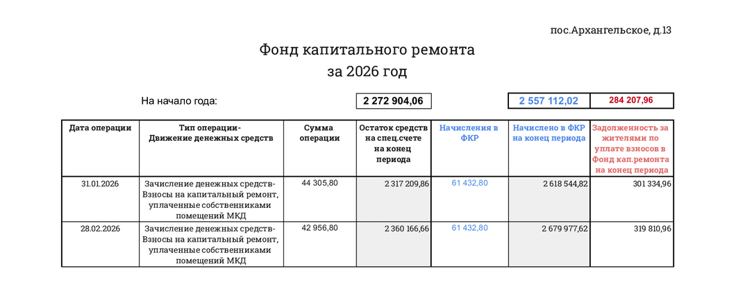 Перечисление денежных средств с иного счета, открытого в целях формирования фонда капитального ремонта многоквартирного дома | 14 085.43 | |